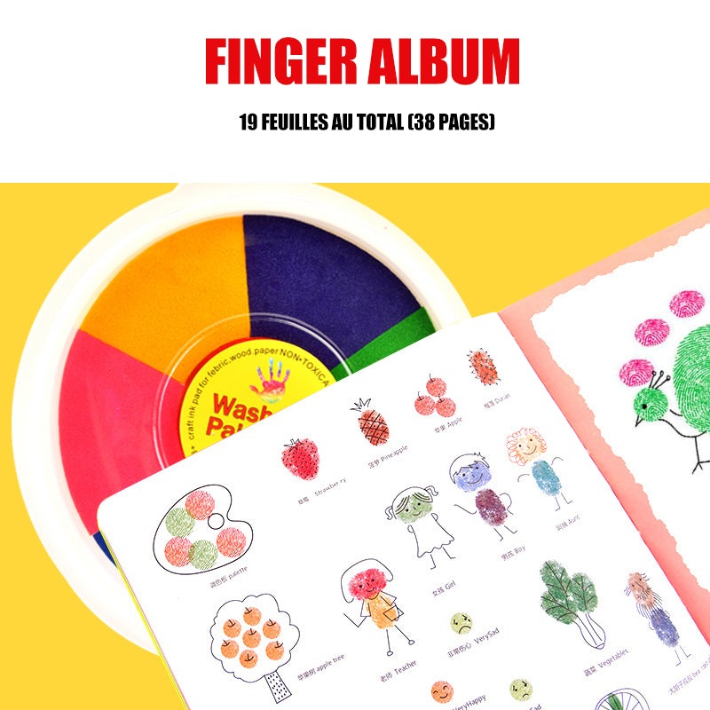 • En raison de la peinture au doigt en contact direct avec le pigment de la peau de l'enfant, pour plus de sécurité, l'utilisation de colorants naturels sains et non toxiques.