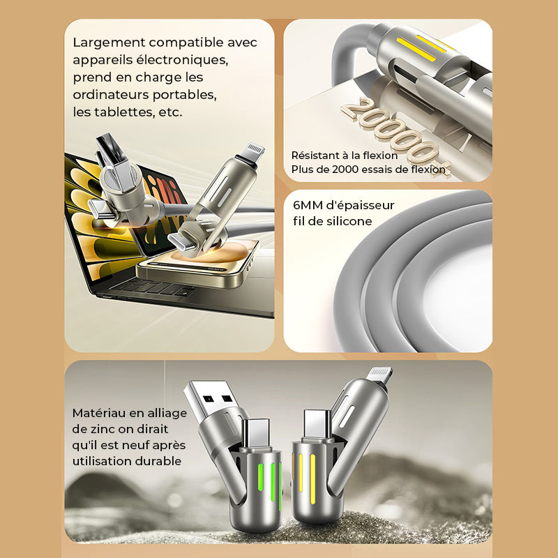💥Chargez vos appareils plus rapidement que jamais avec notre câble USB C 4-en-1 240 W.