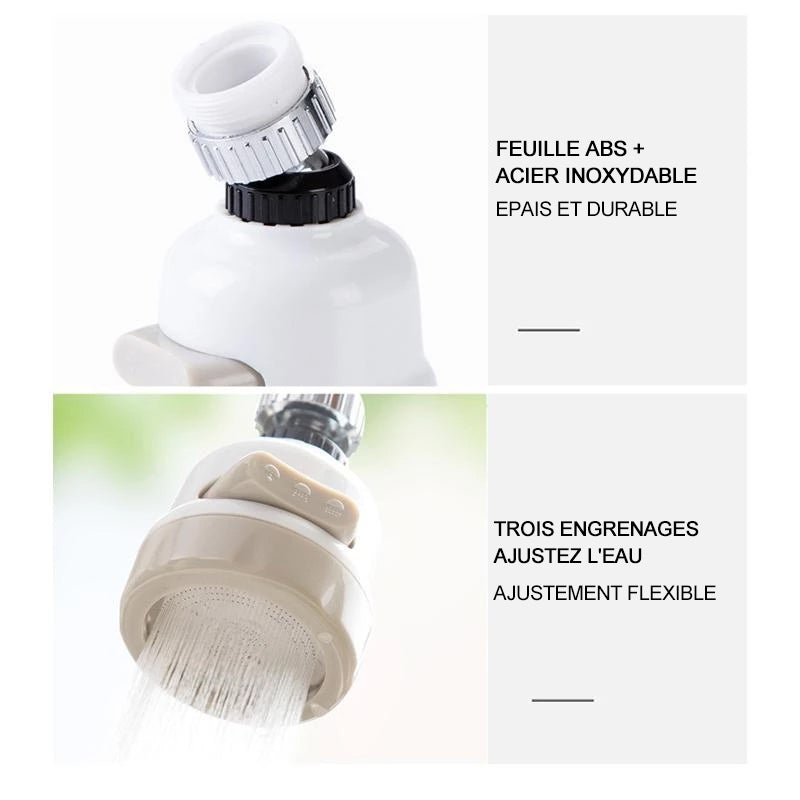 Le produit est livré avec une fixation en caoutchouc blanc pour s'adapter à votre robinet afin de vous assurer qu'il n'y a pas de fuite.