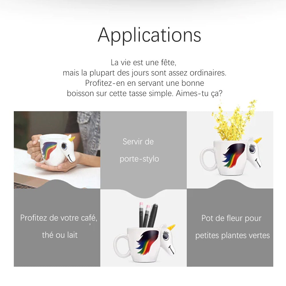 - UNIQUE: Cette tasse est idéale pour le café chaud, le cacao chaud et le thé chaud. Lorsque vous ajoutez du liquide chaud à la tasse, la licorne sur la tasse devient colorée, très intéressante.
