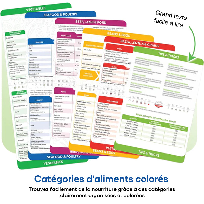 - Le design élégant comprend des onglets faciles d'accès dans de grandes polices faciles à lire. Ensemble de feuilles de triche magnétiques pour friteuse à air instantané avec des instructions de cuisson claires dans le tableau de conversion Fahrenheit et Celsius, garantissant des aliments parfaitement cuits à chaque fois afin que vous puissiez préparer de délicieux plats pour vous-même, vos amis et votre famille dont ils raffoleront.
