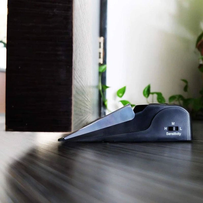 Installation Facile: aucun câblage nécessaire. Cette alarme de butée de porte est alimentée par une pile 9 V (non incluse). Il suffit de le placer sous la porte. L'écart entre le bas de la porte et le plancher doit être d'environ 1 cm à 3,5 cm. Il ne glissera pas sur les carreaux, les planchers de bois, les tapis ou les planchers de ciment. La sensibilité de type H est recommandée sur un sol lisse.