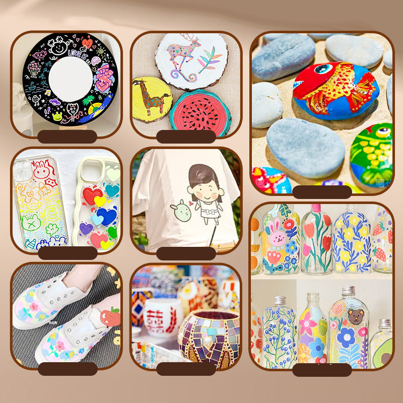 ăBeaucoup de couleurs vivesăLes marqueurs de peinture sont livrĂ©s avec de nombreuses couleurs vives, permettent de dessiner ou d'ajouter des embellissements Ă votre artisanat en bois, bocaux en verre, Ćufs de PĂąques en plastique, boules de NoĂ«l, cartes, rochers peints, pierres, chaussures en toile, tranches de bois, pneus, argile pot etc, marqueurs de tissu. Les dĂ©butants comme les professionnels peuvent mieux libĂ©rer leur crĂ©ativitĂ©!