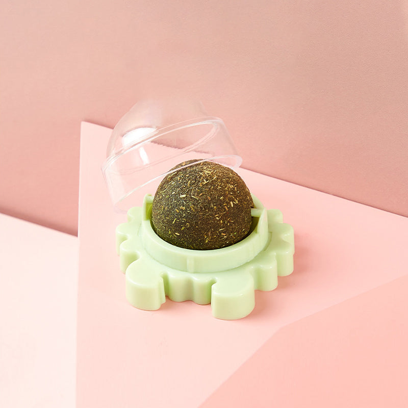 😻 Collant et rotatif : Cette boule d'herbe à chat a un autocollant épais au bas, qui peut être fermement attaché à n'importe quel endroit, comme les murs, les pieds de chaise, les sols, etc., pour éviter toute perte. Il est rotatif pour que votre chat puisse jouer avec, s'amuser et rester en bonne santé.