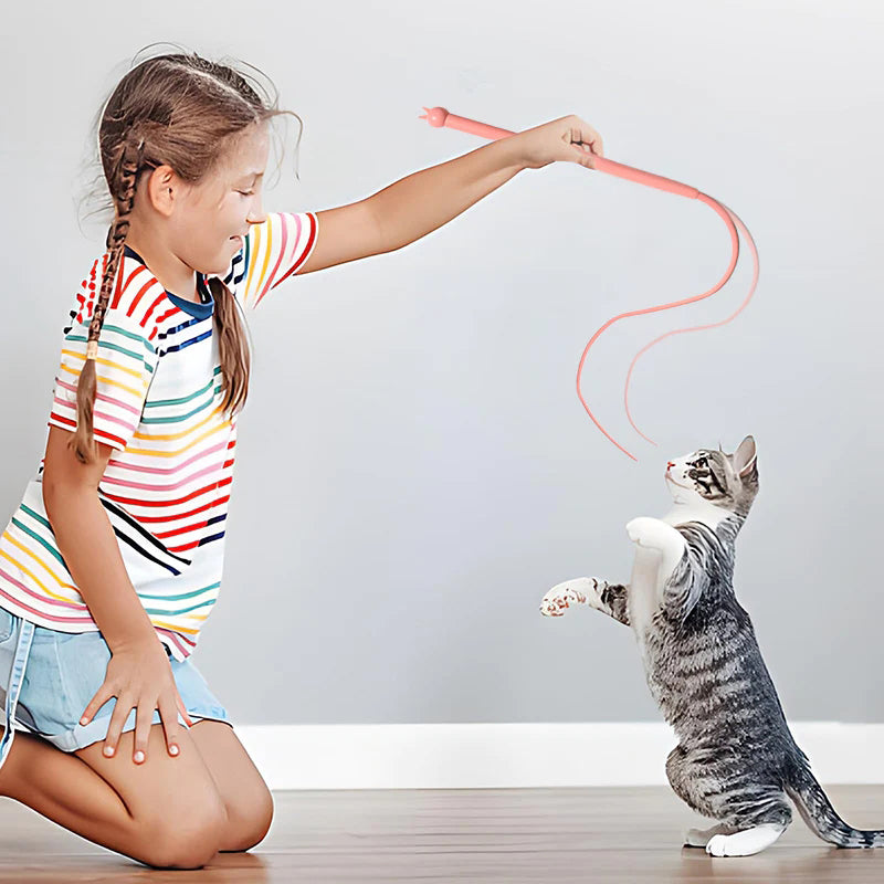 SÛR ET NON-TOXIQUE: Le bâton taquin en silicone pour queue de souris est généralement fabriqué à partir de matériaux non toxiques et respectueux de l'environnement, il est ergonomique et ne causera aucun dommage à la santé de votre chat. Il s'agit d'un choix de jouet sûr qui peut être utilisé en toute confiance.