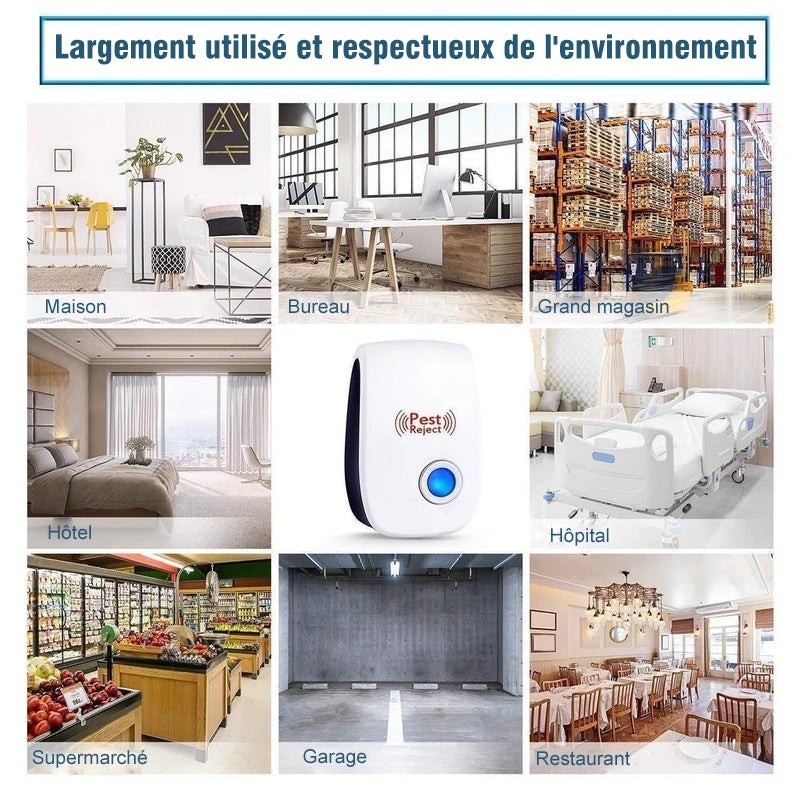 - LARGE GAMME D'UTILISATION. Vous pouvez les utiliser à de nombreux endroits, et ce répulsif à ultrasons peut vous aider à chasser les parasites, idéal pour salon, chambre à coucher, salle de bain, cuisine, bureau, garage, entrepôt, jardins, etc.