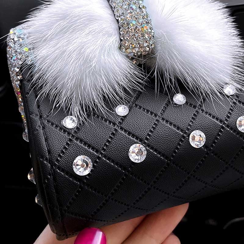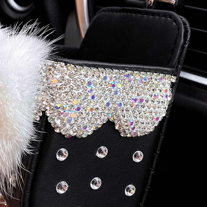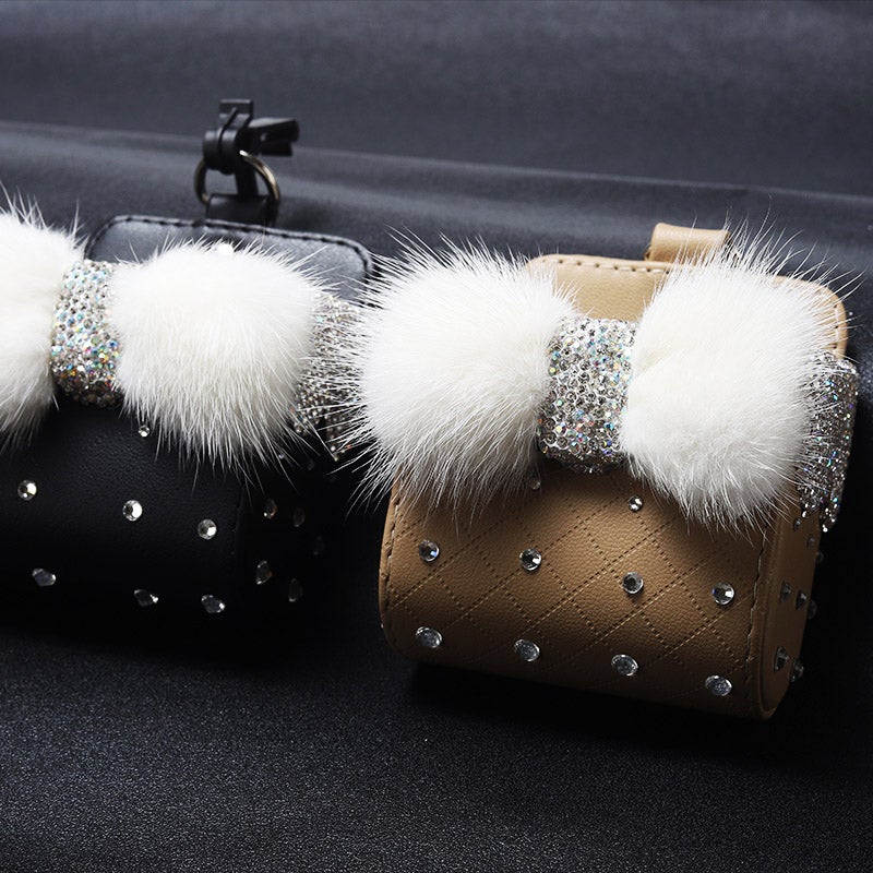 - Conception mode: Motifs élégants, livré avec un noeud en peluche courte avec des strass, ce conteneur de stockage est le plus bel ornement de votre voiture.