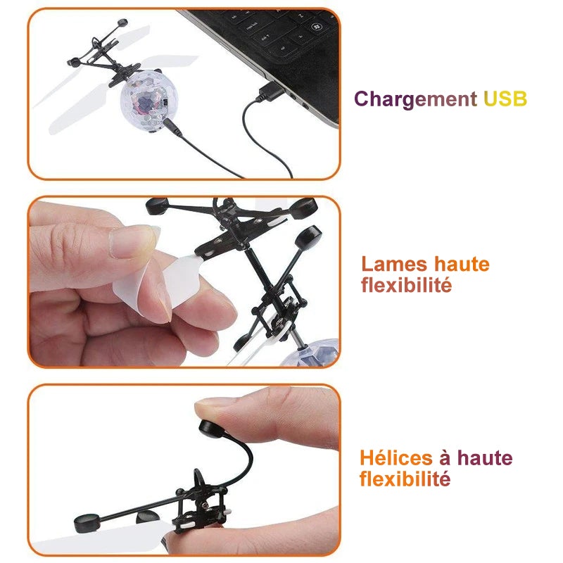 Je suis une machine volante mondiale, un design créatif et une modélisation parfaite font de moi le meilleur jouet. Je suis entièrement fait de plastique ABS non toxique et la couleur de mon corps est transparente, mais quand je commencerai, je rayonnerai des lumières LED de différentes couleurs.