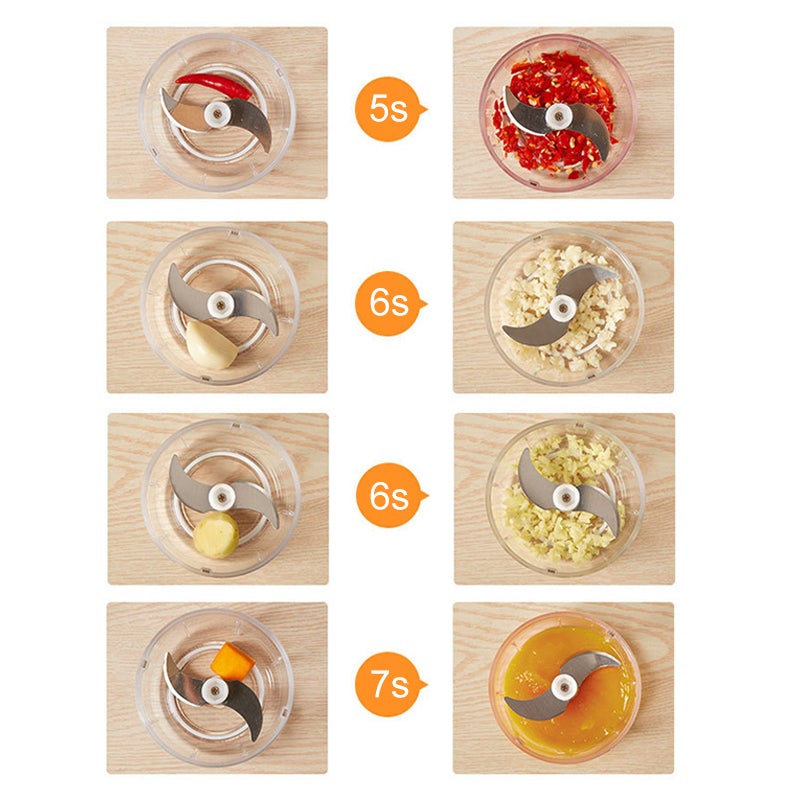 ✿ GAIN DE TEMPS - Le mini-hachoir électrique vous aide à hacher facilement les légumes, les fruits et la viande, à écraser des glaçons, etc. avec des lames tranchantes en acier inoxydable. Économise du temps de préparation pour vos repas quotidiens et vous permet d'avoir plus de temps libre.