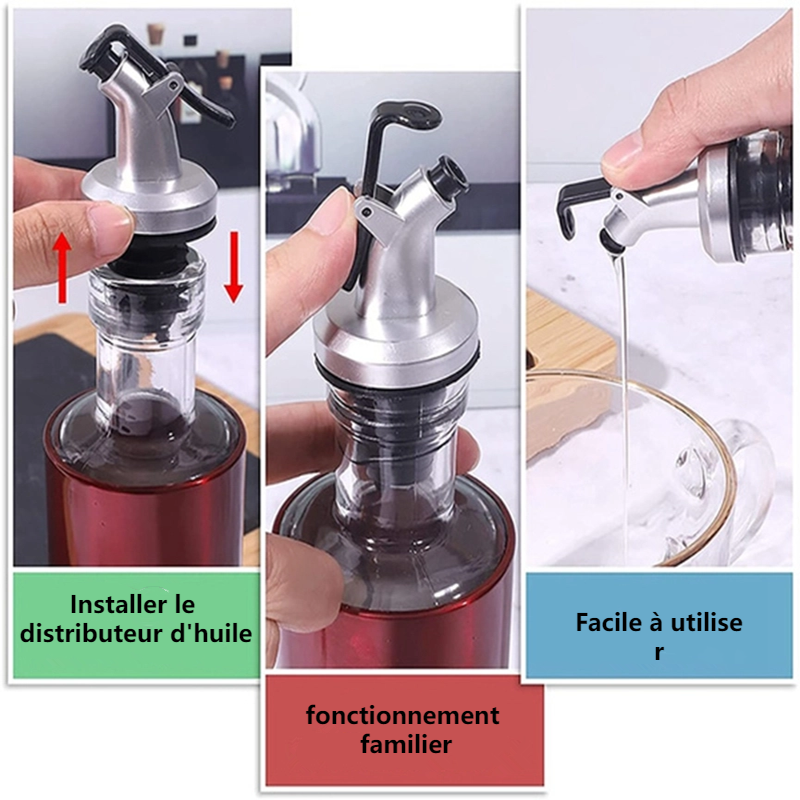 CONTRĂLE DE LA DISTRIBUTION D'HUILE - ContrĂŽlez la quantitĂ© d'huile, de sauce soja ou de vinaigre versĂ©e dans vos plats pour une alimentation plus saine et moins de dĂ©gĂąts. Le distributeur affiche des mesures marquĂ©es pour les salades, les omelettes ou les recettes qui nĂ©cessitent des quantitĂ©s prĂ©cises d'huile.