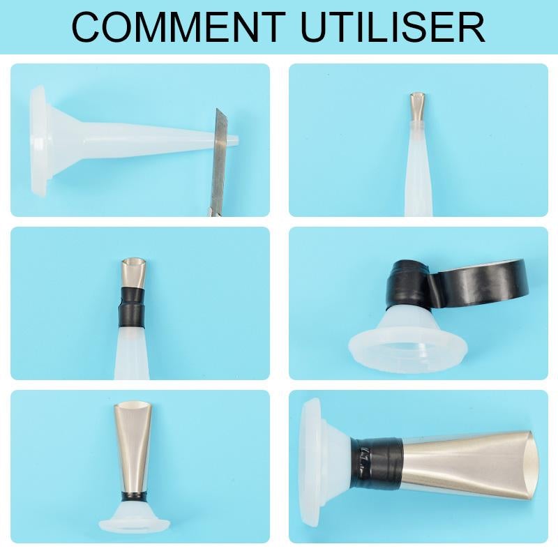 Améliorez facilement la qualité d'agglutination! Créez et enlevez l'excès de calfeutrage comme un pro tout en apaisant facilement les matériaux dans les interstices avec ces nouvelles Buses de Calfeutrage Parfaite
