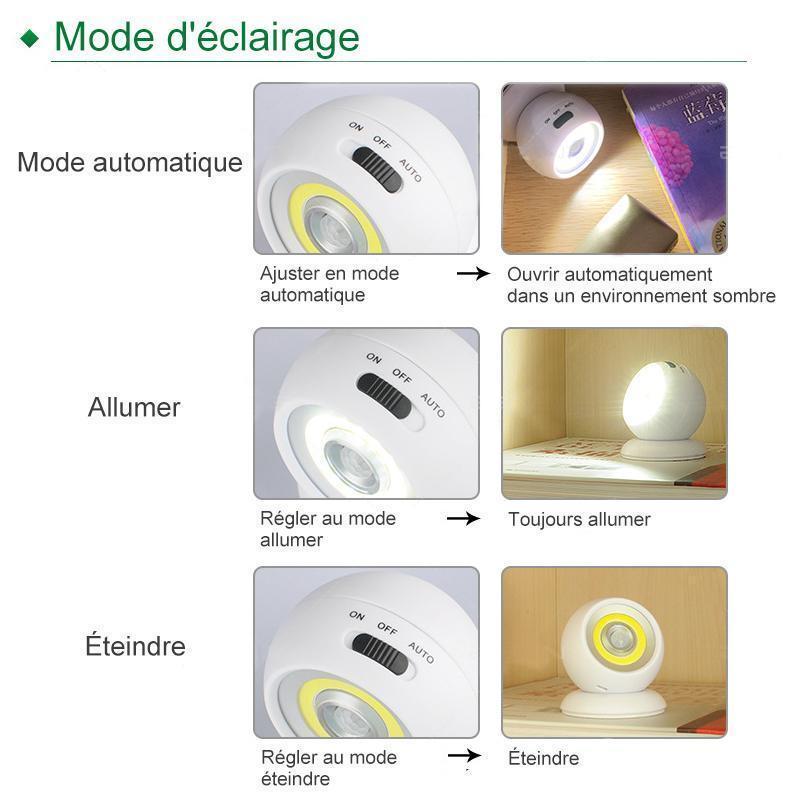 - Rotative à 360 degrés et amovible: avec une tête réglable qui dirige la lumière exactement où elle est dirigée. La lumière peut être retirée de la base de montage et utilisée comme lampe de poche.