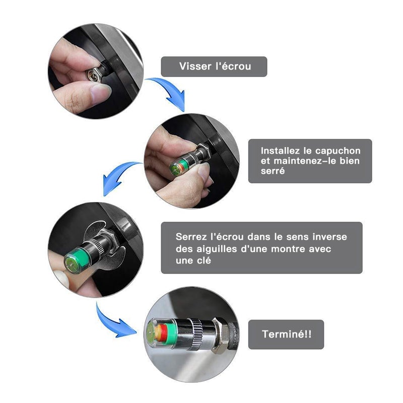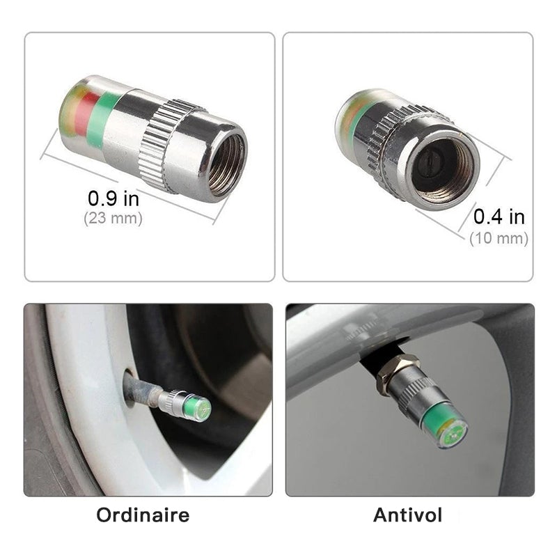 4 x Capuchons De Tige De Valve D'indicateur De Pression Des Pneus