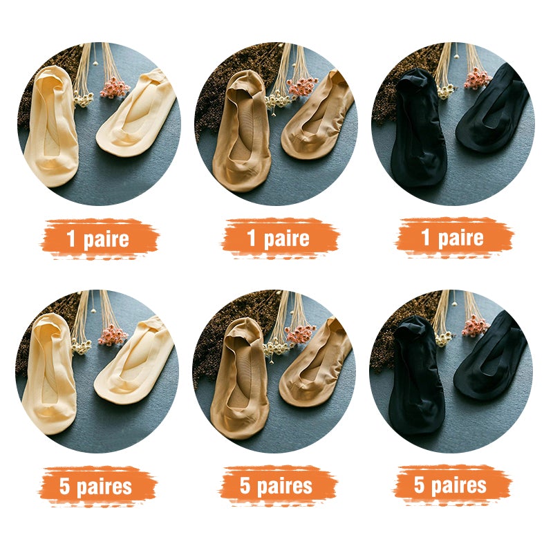 - 1/3/5 paire(s) × Chaussettes Invisibles 3D Rembourrées pour Femmes avec Massage des Pieds