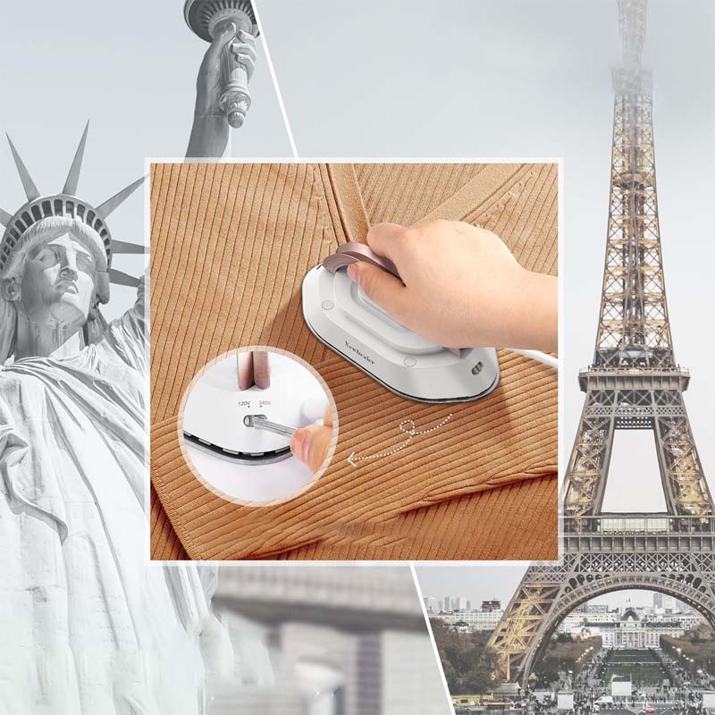 【Double voltage 100-240V, idéal pour les voyages】Le mini fer à repasser est doté d'un interrupteur à double tension, ce qui vous permet de l'emporter partout dans le monde. Avec une puissance de 300 watts, il défroisse presque tous les tissus pour des tenues dignes d'une photo. Lorsque vous voyagez à l'étranger, il vous suffit de choisir entre 100 et 240 volts et de préparer l'adaptateur de prise à l'avance !