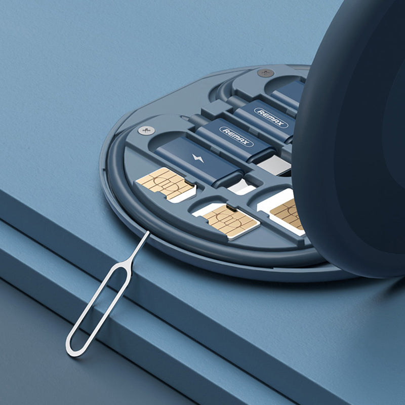 Livré avec 1 câble USB Type-C avec 3 adaptateurs (Micro USB, USB Type-A et Lightning), 3 emplacements pour carte SIM, 1 outil d'éjection SIM et un support de téléphone pliable intégré.