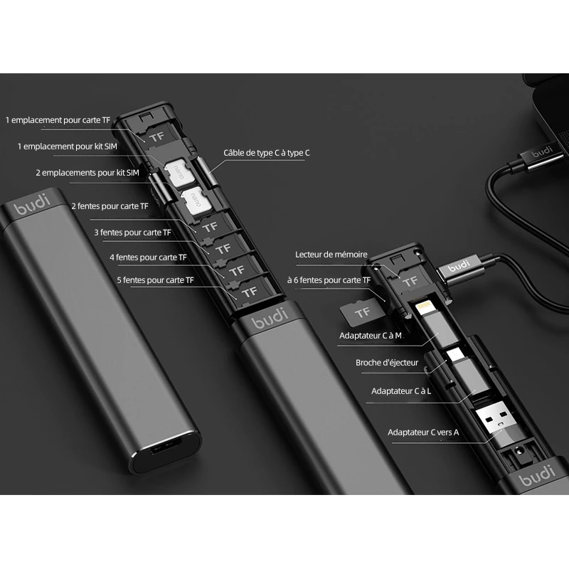 Barre de câble de données multifonctionnelle, 6 types de câbles, kit de carte SIM, lecteur de carte TF, support de téléphone pour vos besoins quotidiens !