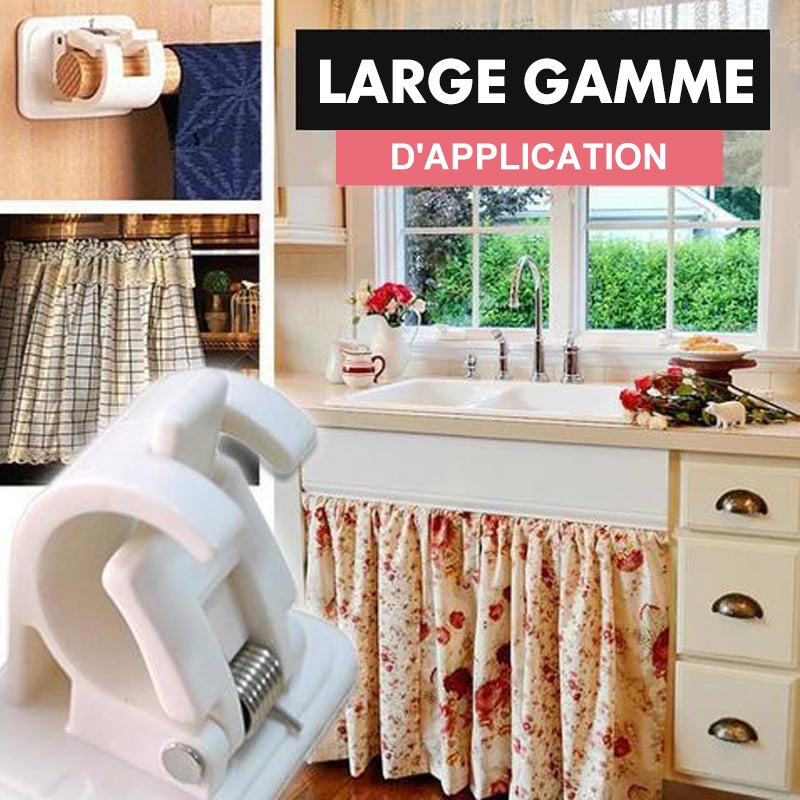 Flexible et polyvalent pour une application illimitée, ajustez-le pour accrocher et tenir parfaitement tout type de tringle à rideau tout en permettant une installation sûre et transparente ne nécessitant ni perceuses ni clous!