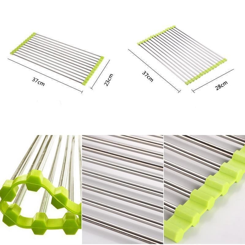 - Égouttoir à vaisselle en acier inoxydable - Fabriqué en acier inoxydable résistant de qualité alimentaire, ce séchoir est très solide et robuste, et il peut résister à une utilisation constante et à la rouille pendant des années. En termes de construction, les poignées en caoutchouc antidérapantes de qualité alimentaire à chaque extrémité sont fermement fixées à l'acier inoxydable tiges d'acier, ce sont notre avantage unique