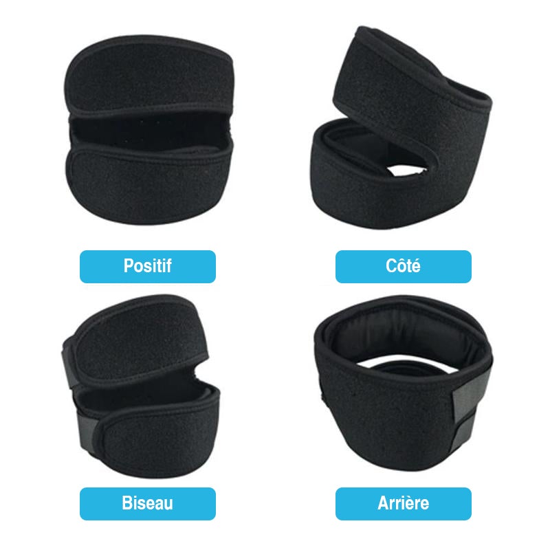 Le tube de compression inférieur cible le tendon rotulien et le tube de compression supérieur cible le désalignement du quadriceps pour aider à améliorer le suivi rotulien.