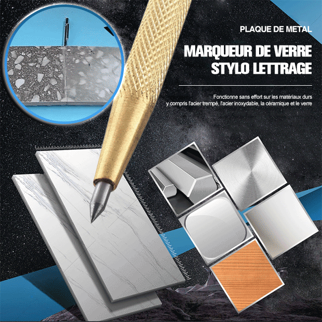 Le stylo de lettrage pour marqueur de verre à plaque métallique peut améliorer l'efficacité de votre travail et vous pouvez l'utiliser pour couper des carreaux durs.