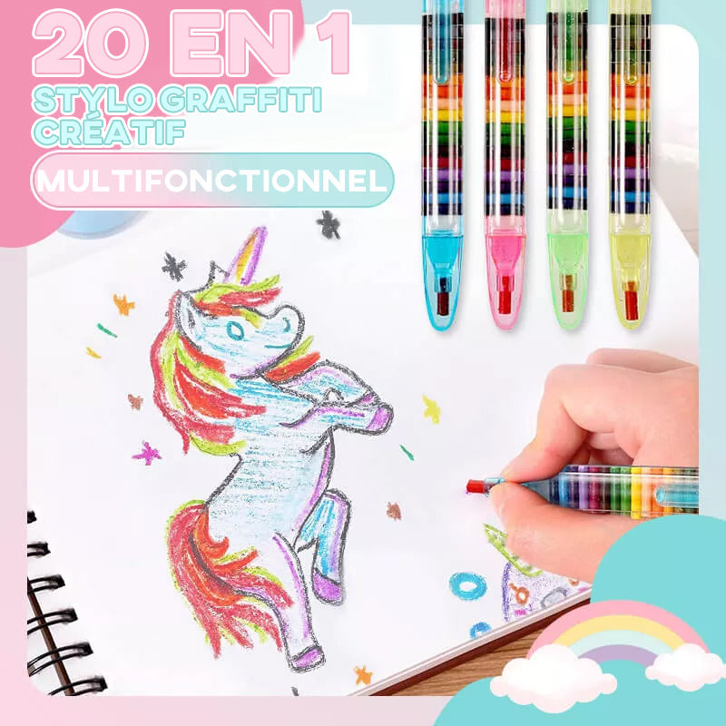 Contenu : 4 stylos graffiti créatifs multifonctions 20 en 1.