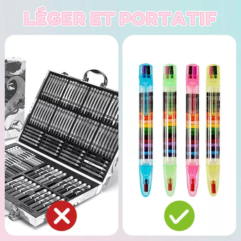 🖍 20 crayons de couleur en 1: Chaque crayon contient 20 couleurs d'encre, toutes belles et adaptées à un usage quotidien. Les crayons de couleur répondent aux besoins de votre processus de dessin, et les encres de couleur stimulent votre créativité et votre imagination et augmentent votre intérêt pour l'apprentissage.