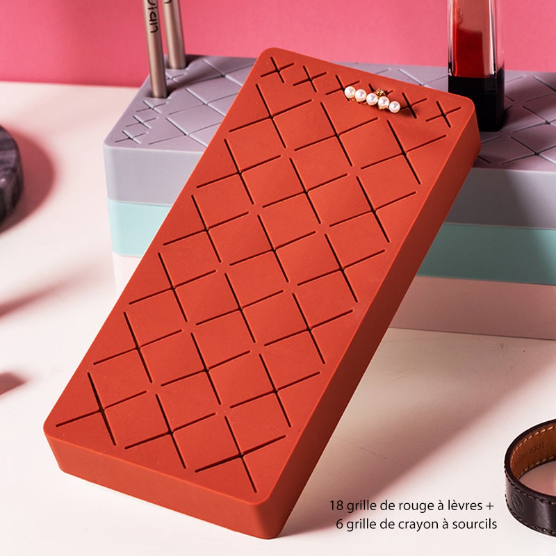 Conception créative de chocolat - Un organisateur de rouge à lèvres et un rangement composé de 6 fentes, 18 grandes fentes pour le rouge à lèvres, un grand pinceau de maquillage, du vernis à ongles, des produits cosmétiques de soin de la peau en tube mince; 6 petites fentes pour eye-liner, crayon à sourcils, petit pinceau, crayon de maquillage, boucles d'oreilles ou autre ornement, etc.
