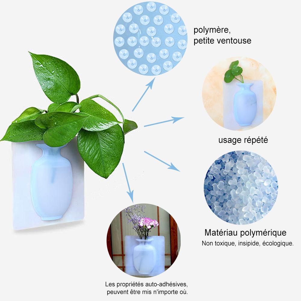 - -🌟Vase collant décoratif pour la maison. Sans adhésif !!! Retirez et collez-le encore et encore sans dommages sur les surfaces auxquelles il est attaché.