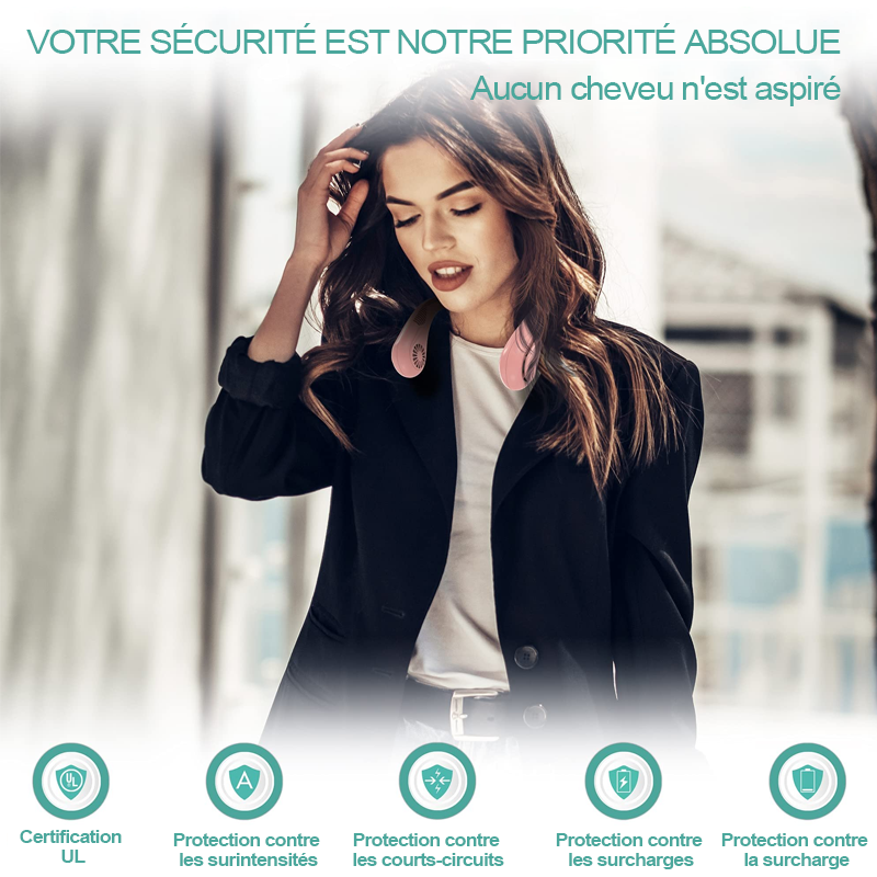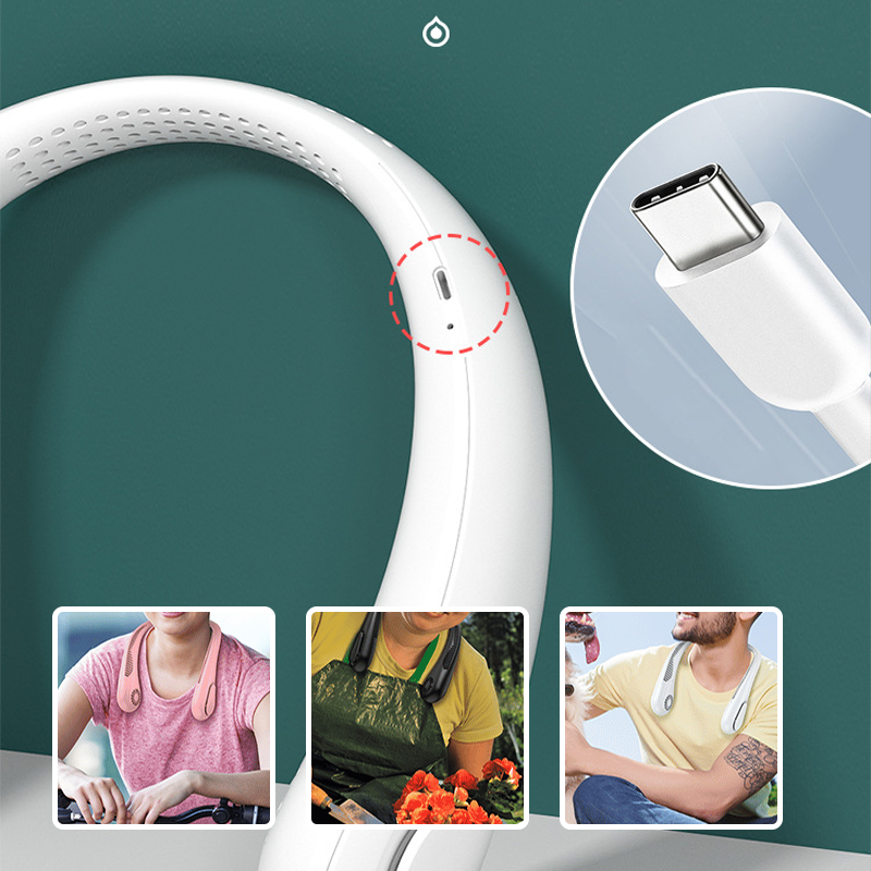 Conception mains libres et angle réglable:Cette conception mains libres permet de libérer vos mains. De plus, grâce au silicone souple sur la partie du cou du ventilateur, vous pouvez toujours ajuster l'angle du flux d'air à volonté. Et les nombreuses petites sorties d'air réparties sur le ventilateur peuvent vous donner un vent silencieux à 360 degrés autour de votre cou et de votre visage.