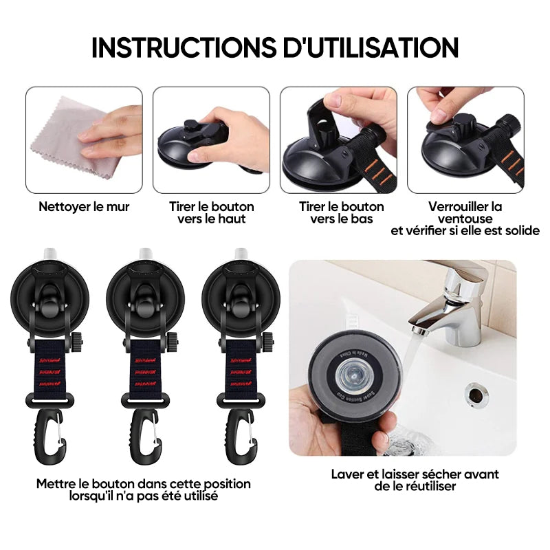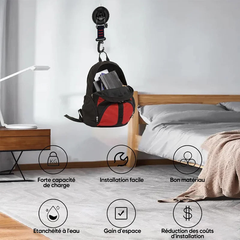 Forte tenue: peut contenir jusqu'à 22 lb/10 kg chacun. Un outil idéal pour les voyages ou la maison. Fonctionne sur des plans lisses tels que les murs carrelés, le verre, le coffre, les meubles en bois, etc.